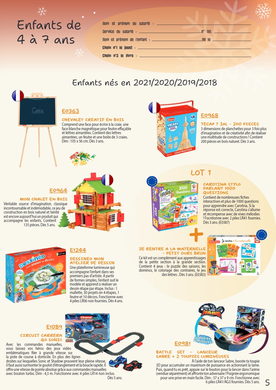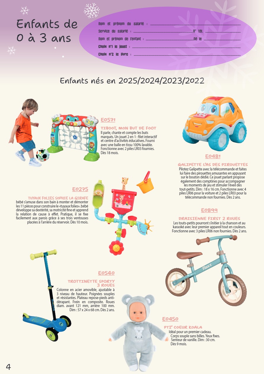 - Distribution d’un cadeau et d’un livre ou d’un bon achat pour les enfants de 0 à 16 ans.