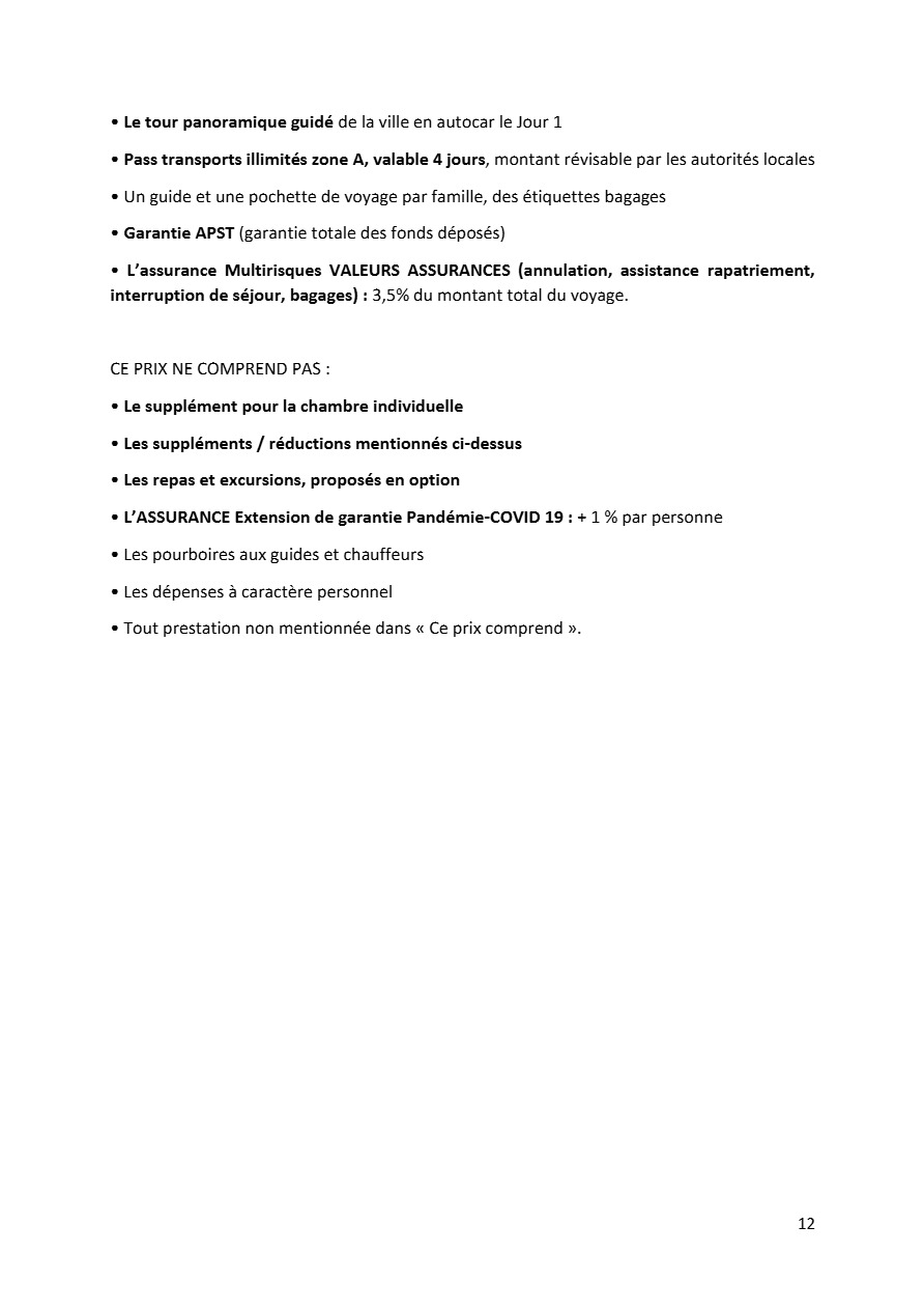 - Organisation des voyages à l’étranger. Le séjour devra impérativement être payé au 31/12 de l’année en cours du voyage.